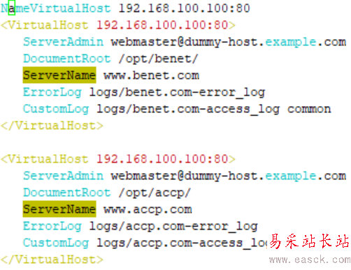 1.基于域名的虛擬主機(不同域名相同IP和端口)