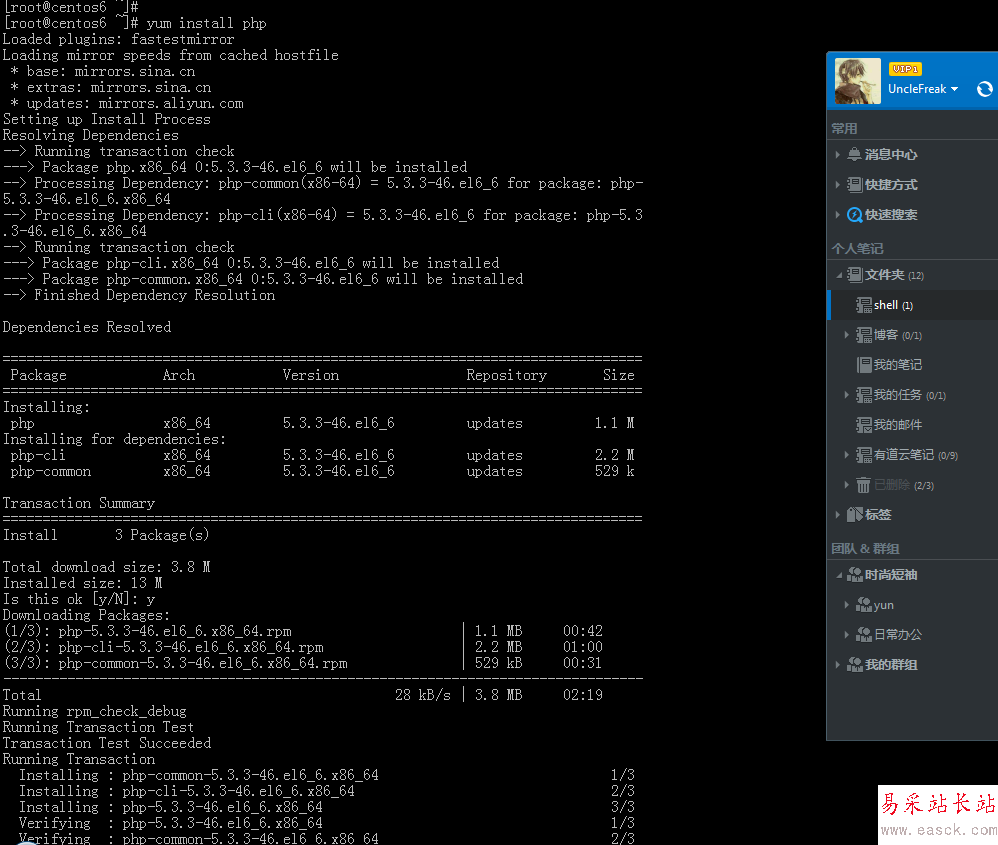 yum install php