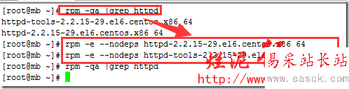rpm -e --nodeps httpd-2.2.15-29.el6.centos.x86_64