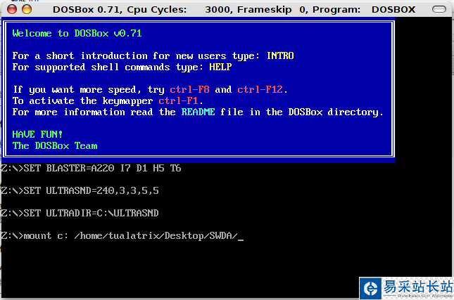 我已經把我最喜歡的游戲下載放到了桌面,打開DOSBox后,直接mount到它的C盤: