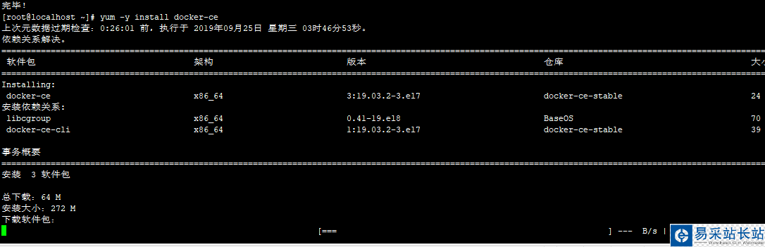 [root@localhost ~]# yum -y install docker-ce //安裝Docker軟件包