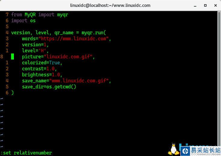 要啟用相對行編號,請切換到命令模式,然后輸入 :set relativenumber 或 :set rnu :
