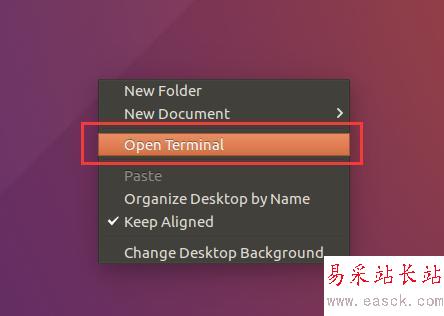 2、在Ubuntu空白窗口中右擊,在出現的下拉列表中選擇“Open Terminal”,然后將之前復制的指令粘貼進去,在點擊回車鍵之后輸入相關密碼,然后運行,運行成功之后關閉終端;