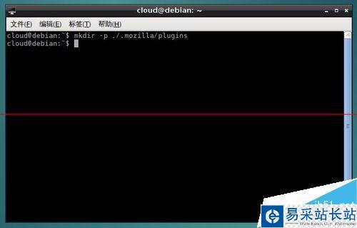 5、在終端中輸入:"mkdir -p ./.mozilla/plugins",為火狐瀏覽器創建插件目錄。
