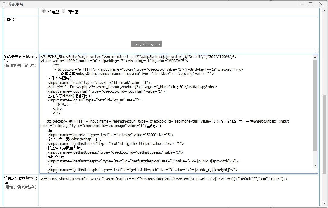 3、這個(gè)是沒(méi)修改之前默認(rèn)編輯器的字段代碼: