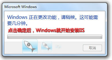 選中這些之后,其他默認即可,然后點確定。Windows就開始安裝IIS了。