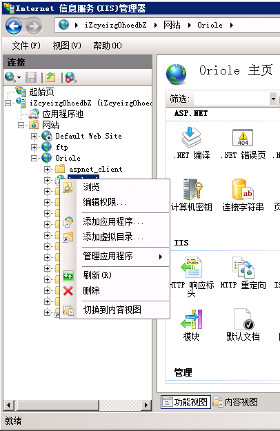 點(diǎn)擊站點(diǎn)=》Oriole,找到“bankend”目錄,右擊選擇“轉(zhuǎn)換為應(yīng)用程序”。