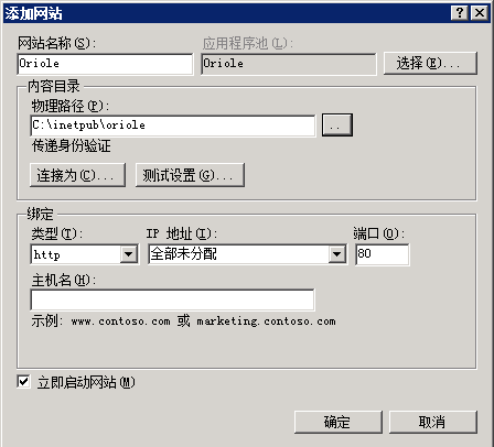 右擊“網(wǎng)站“,選擇添加網(wǎng)站,在“添加網(wǎng)站”對(duì)話框中輸入網(wǎng)站名稱,選擇項(xiàng)目所在的物理路徑,然后給網(wǎng)站分配端口。