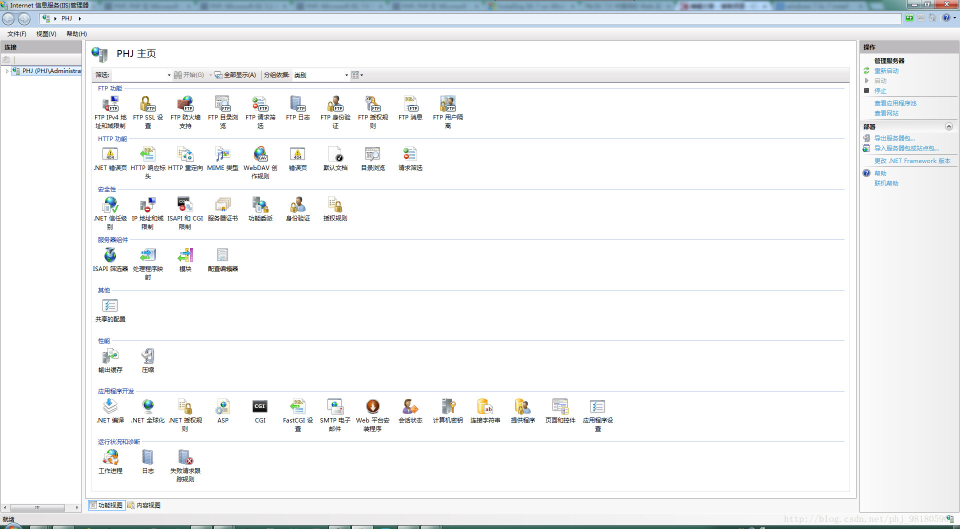3、重新進(jìn)入控制面板-->管理工具-->Internet信息服務(wù)(IIS)管理器。如圖所示:
