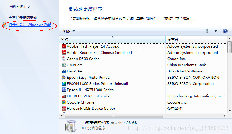 1、單擊開始菜單-->控制面板-->程序和功能-->左側(cè)“打開或關(guān)閉Windows功能”。如下圖: