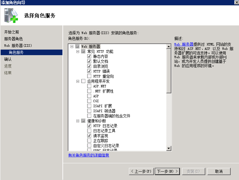 根據(jù)需要添加ASP.NET 、.NET 擴展性、CGI、ISAPI 擴展、ISAPI 篩選器