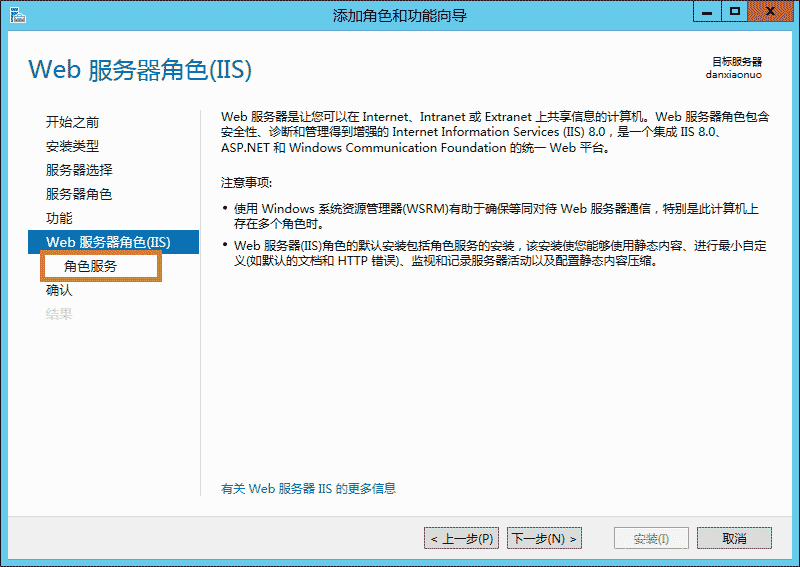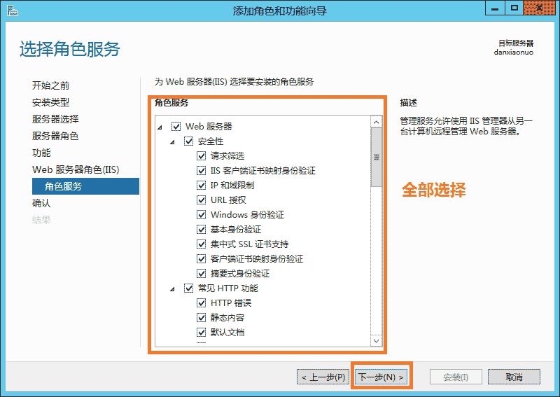 再單擊左邊"角色服務器",中間角色服務列表選擇需要安裝的項目