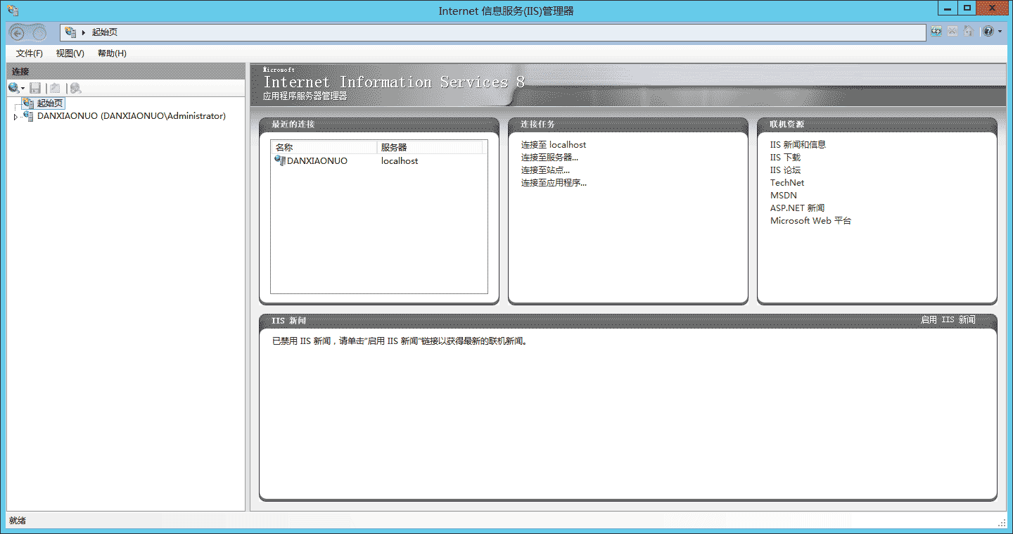 查看windows 2012 Server IIS8.0安裝和運行結果:打開Internet Explprer10瀏覽器,輸入本機公網ip,或者本機內網ip,或localhost都可以,看到IIS8.0界面顯示出來了!