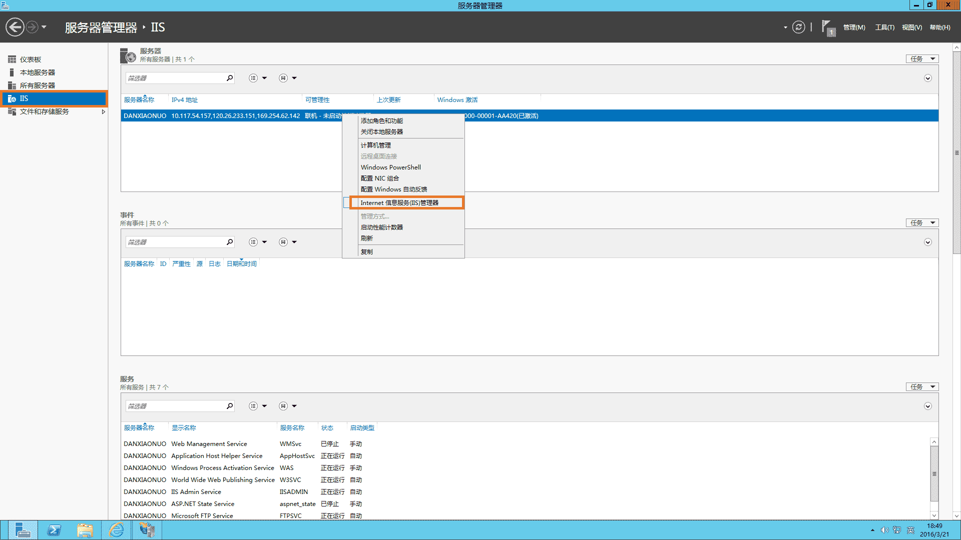 服務器管理員――>儀表盤――>IIS――>IIS管理器