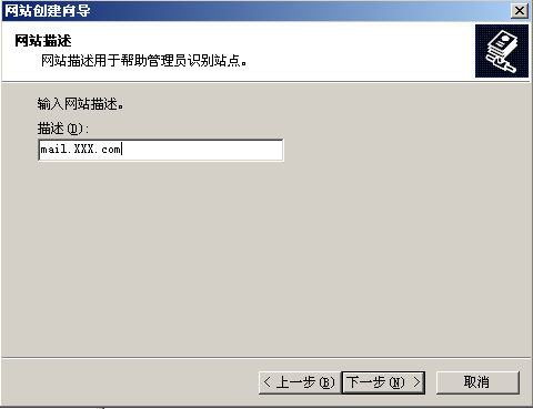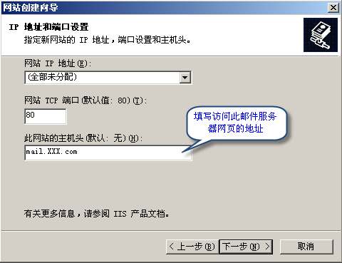 網站主機頭請填寫你的網站訪問時要用的網址:比如你要用mail.XXX.com訪問則此處就是mail.XXX.com