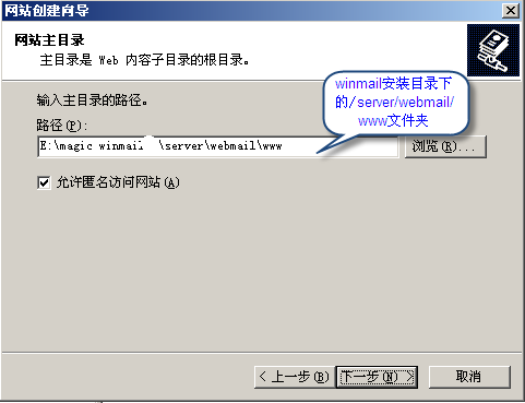 5. 選擇網站目錄地址,為winmail安裝目錄下的server/webmail/www/目錄: