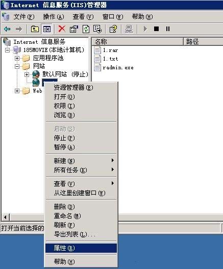 右鍵點擊“默認網站”,選擇屬性 如圖: