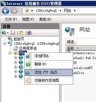 2. 在IIS管理器 添加FTP網(wǎng)站