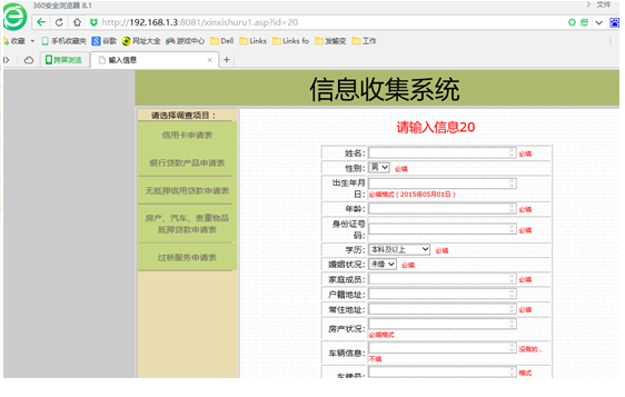 5、打開瀏覽器,輸入IP地址,就可以進入編寫的基于web的應用程序。如下圖所示: