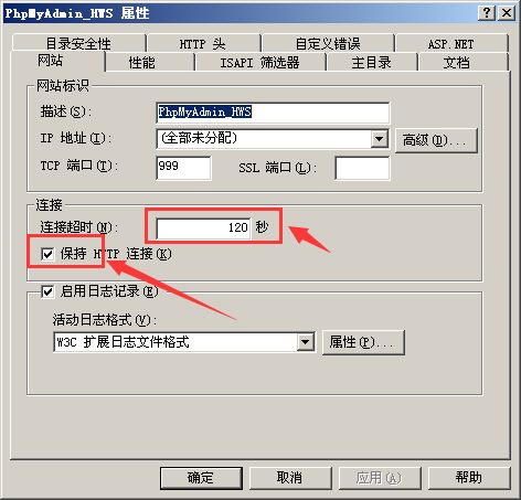 在“網站”選項卡的“連接”部分,清除“保持 HTTP 連接”復選框。