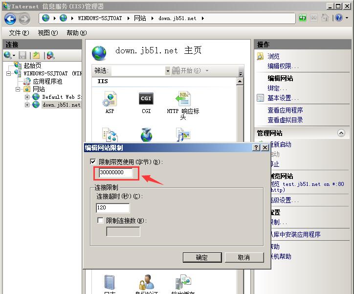 最近網站有網友問IIS 7 下如何限制站點帶寬?IIS6下很方便,IIS7 不知道到哪里設置了?