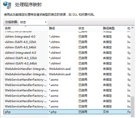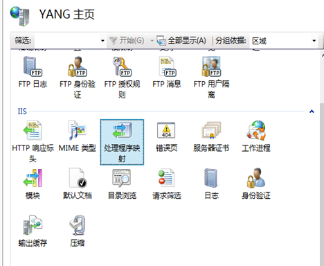3、選擇IIS功能下的”處理程序映射”雙擊進(jìn)入,然后最右邊選擇”添加模塊映射”