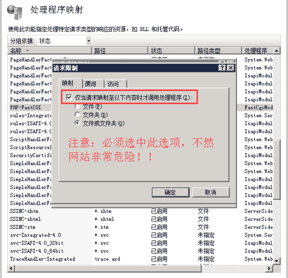 3、如果你的php映射沒有勾選,請速度勾選上,不然網站非常危險,用戶上傳一個圖片,就可以拿到web權限;
