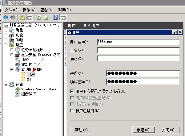 1.在服務(wù)器計(jì)算機(jī)管理中新建一網(wǎng)站用戶用于對(duì)網(wǎng)站的匿名訪問,比如用戶名為365aixue