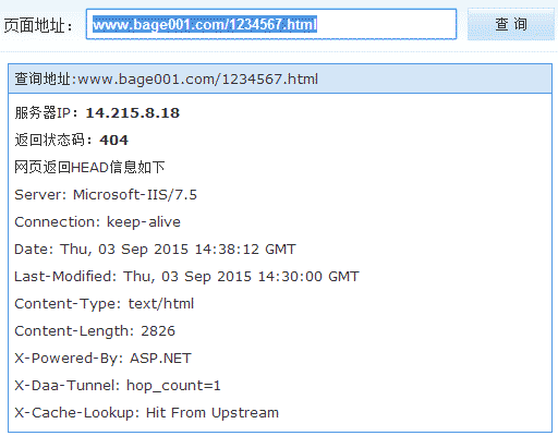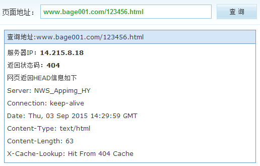 6、測試能夠打開404錯(cuò)誤頁面,并不代表設(shè)置的404錯(cuò)誤頁面就成功了,從SEO方面說,如果您的網(wǎng)站HTTP狀態(tài)碼是返回200或302,是對(duì)SEO很不友好的,我們需要網(wǎng)站的HTTP返回狀態(tài)碼是404。我們可以利用HTTP狀態(tài)查詢工具測試網(wǎng)站的HTTP返回狀態(tài)碼。如下圖,網(wǎng)站HTTP狀態(tài)碼成功返回404,404頁面設(shè)置成功。
