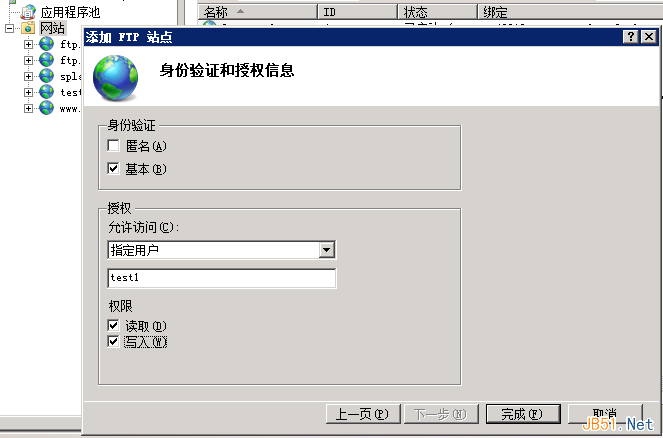 除了test1外,你還可以配置test2、test3等等,實現一個用戶、一個目錄、一個ftp站點。這個跟IIS建獨立站點貌似極其相似哈!