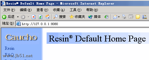 這表明resin自帶的web服務已經(jīng)運行在本機的8080端口上了。