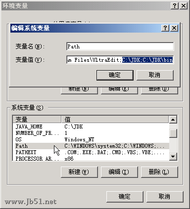 path 路徑里添加 c:/jdk;c:/jdk/bin