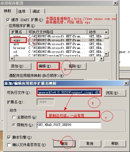 3.如右側窗口,找到 .aspx 擴展名――》編輯――》復制 可執行文件的路徑――》關閉