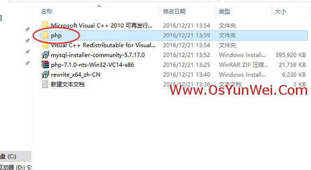 重命名文件夾為php,把php文件夾拷貝到C盤根目錄