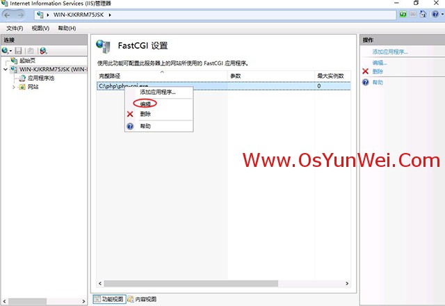 右鍵選中:C:/php/php-cgi.exe然后選擇編輯