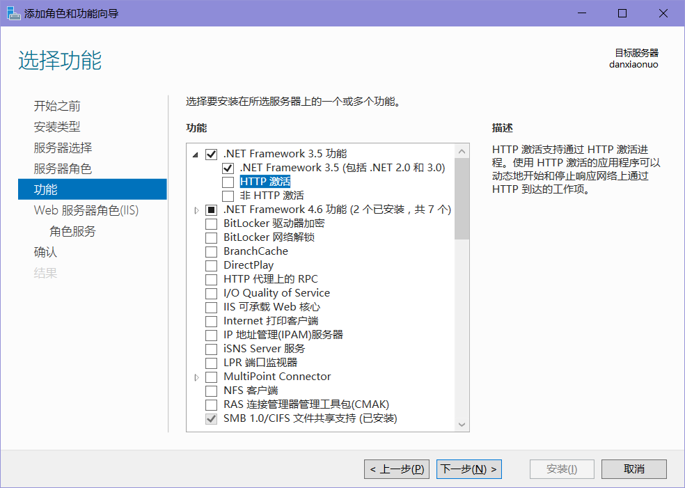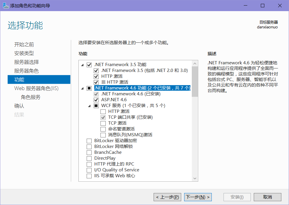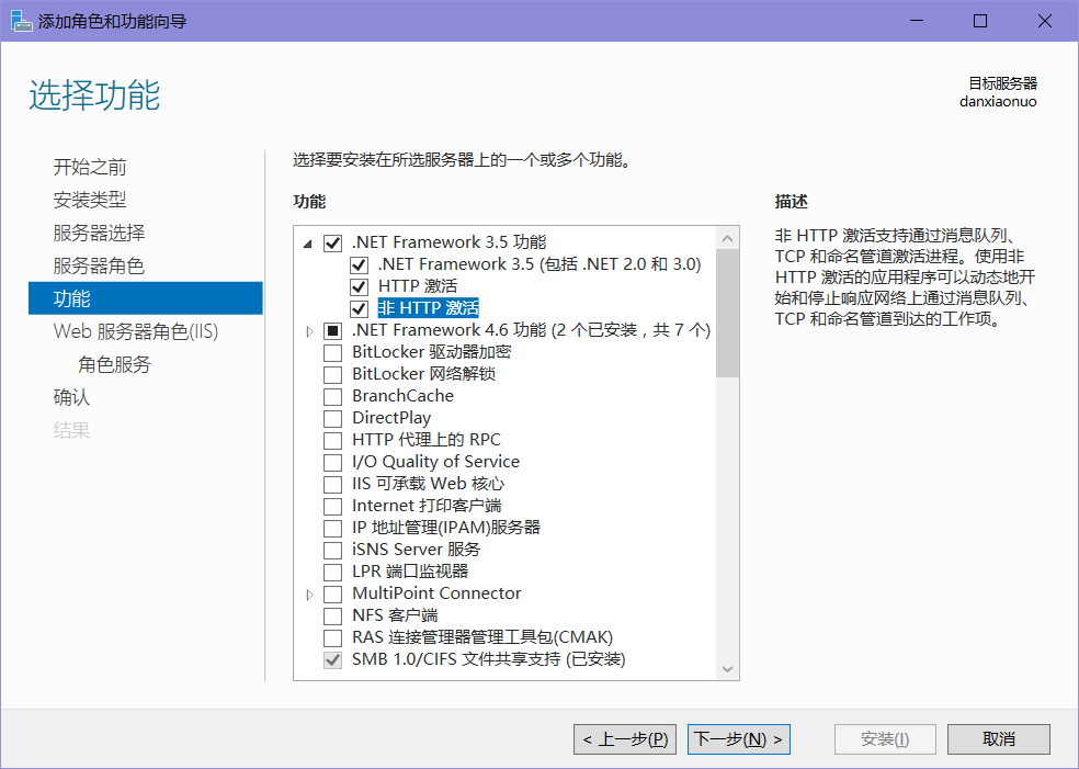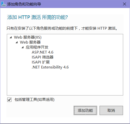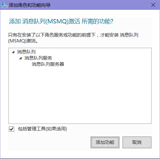 選擇"消息隊列(MSMQ)激活"->單擊"增加功能"
