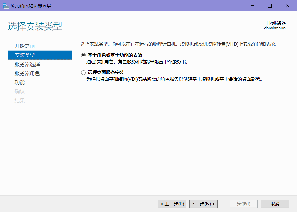 選擇"基于角色或基于功能的安裝"->單擊"下一步"