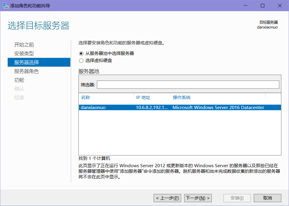 選擇"從服務(wù)器池中選擇服務(wù)器"->單擊"下一步"