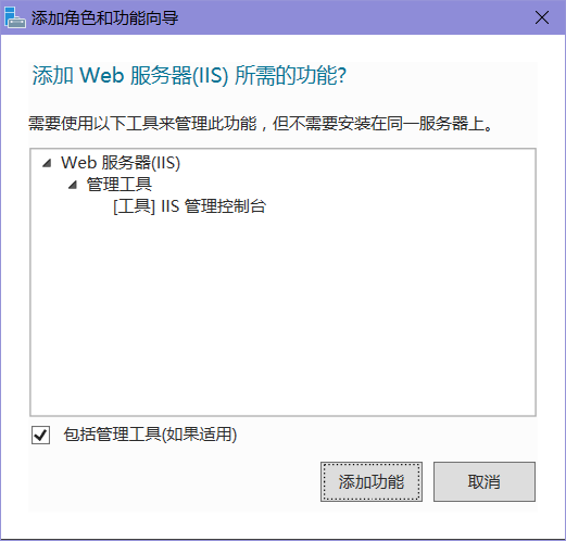 2、添加Web服務(wù)器(IIS)所需的功能->單擊"增加功能"