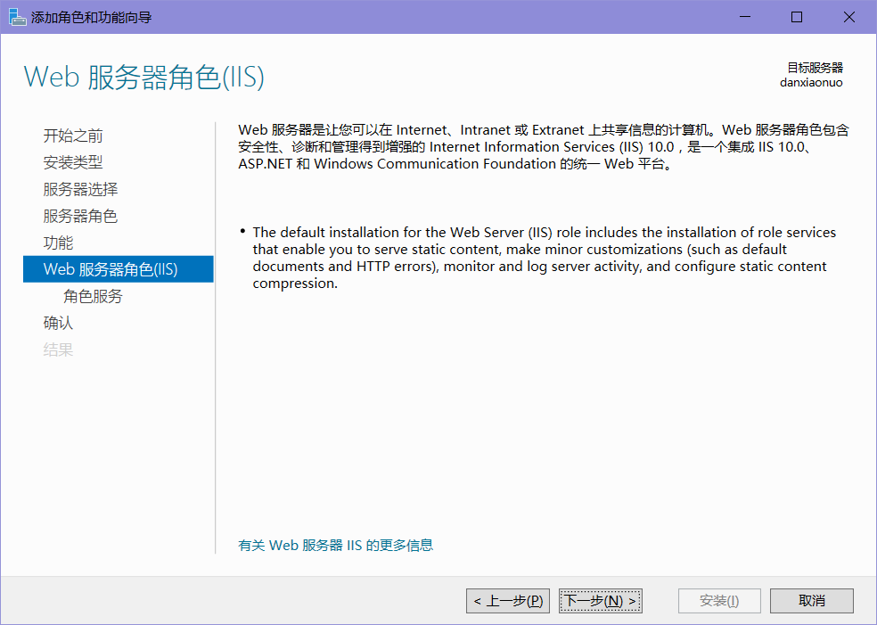 七、Web 服務(wù)器角色(IIS)->單擊"下一步"