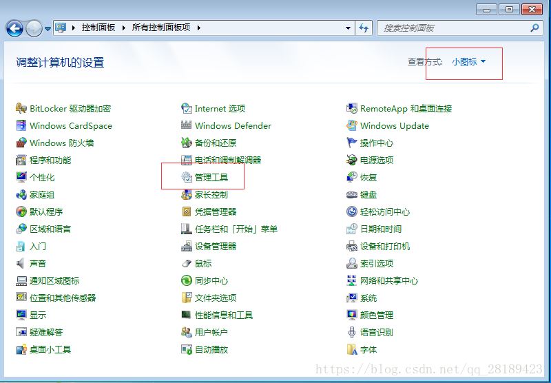 b、將控制面板的查看方式 設置為小圖標,這樣可以展示更多的內容,否則可能看不到。點擊默認程序。