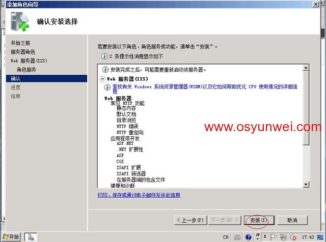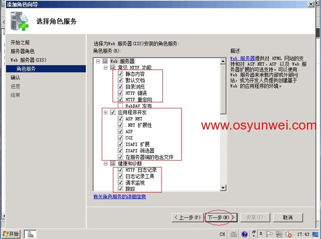 確保“CGI”被選中,其他的角色服務(wù)可根據(jù)自己的需要勾選