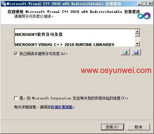 二、安裝Microsoft Visual C++ 2010 可再發(fā)行組件包 (x64)