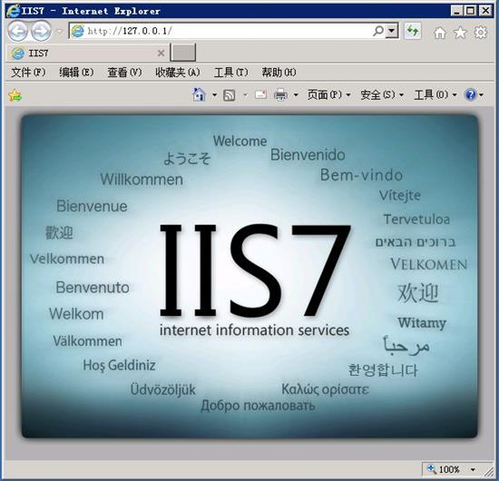 在瀏覽器中輸入127.0.0.1,即可打開IIS默認頁面。