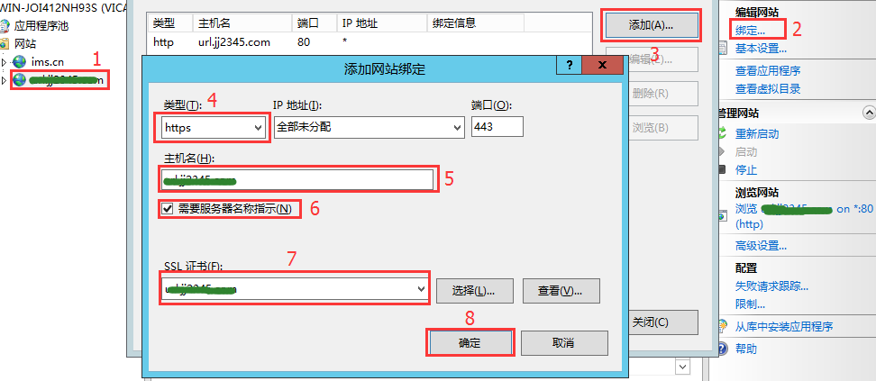 (IIS 8如何安裝SSL證書,請參考指南:http://xiazai.jb51.net/201803/books/IIS8SSLbushu.pdf)