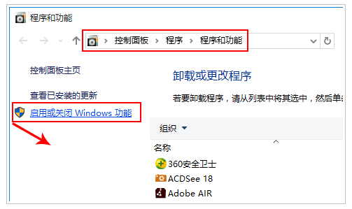 2、找到【程序和功能】后,點擊【啟用或關閉windows功能】。