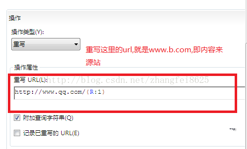 4、對站點www.a.com設置重寫條件保存,這里的www.b.com 以騰訊網為例,重啟IIS;