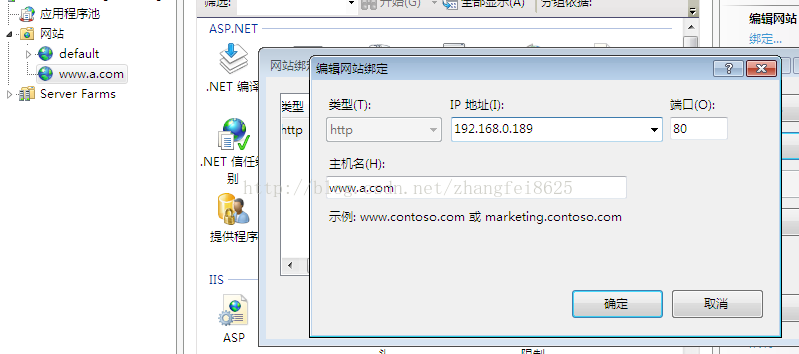 2、新建站點:(需要使用代理的網站)命名www.a.com 綁定北京ip 192.168.0.189