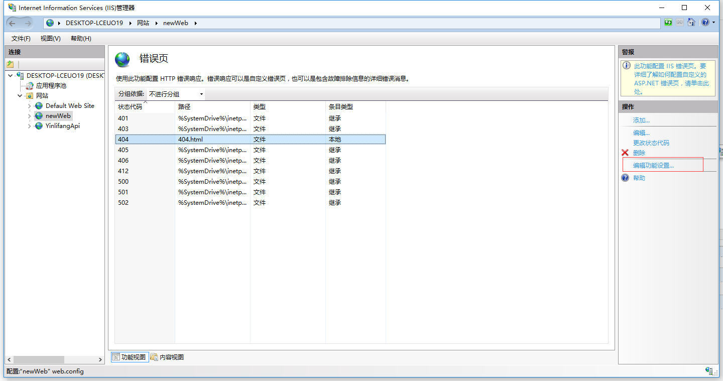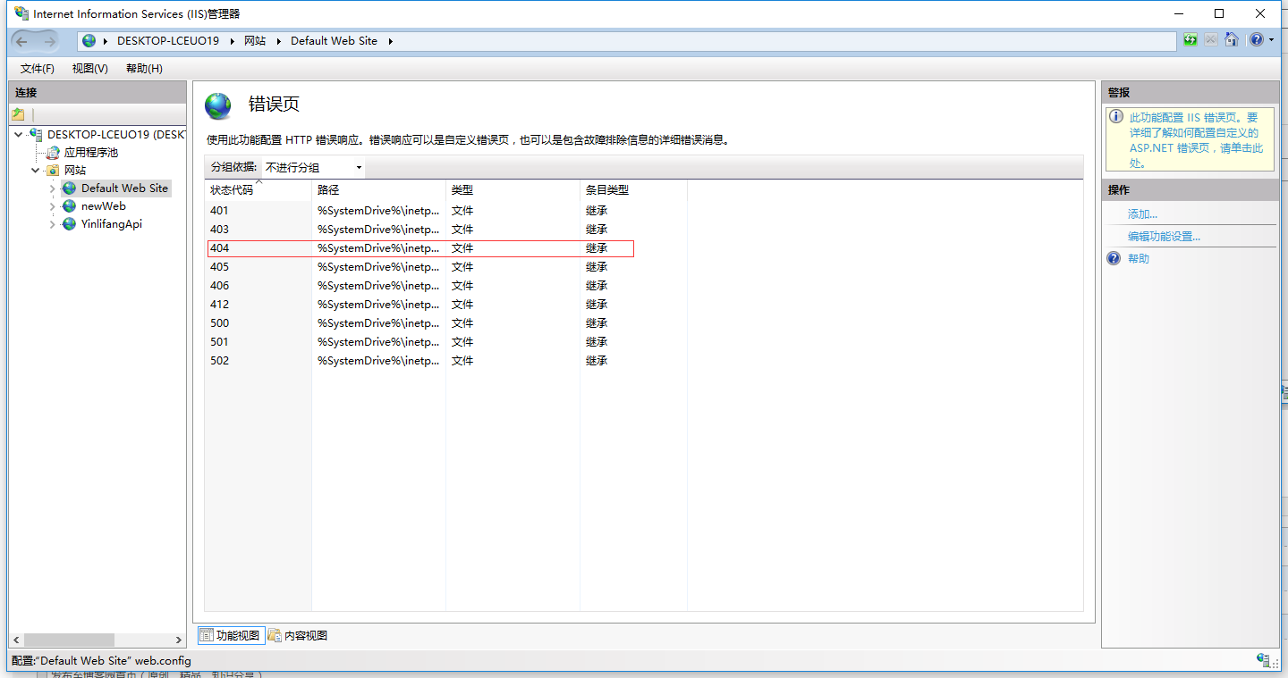 我以為到此就算是設(shè)置好了,結(jié)果發(fā)現(xiàn)設(shè)置根部不起作用,然后各種搜,也沒有發(fā)現(xiàn)什么有價(jià)值的信息,大部分都是說要修改根目錄下生成的webconfig文件......