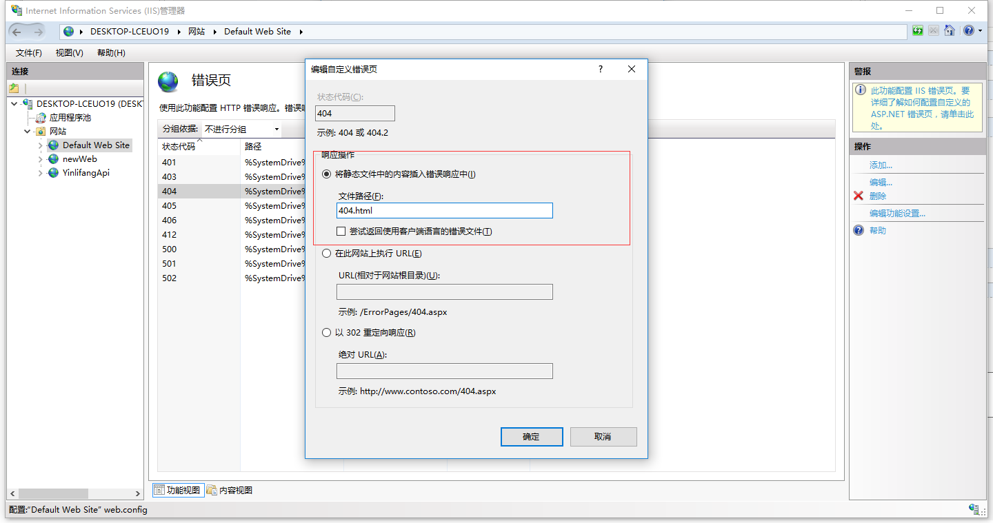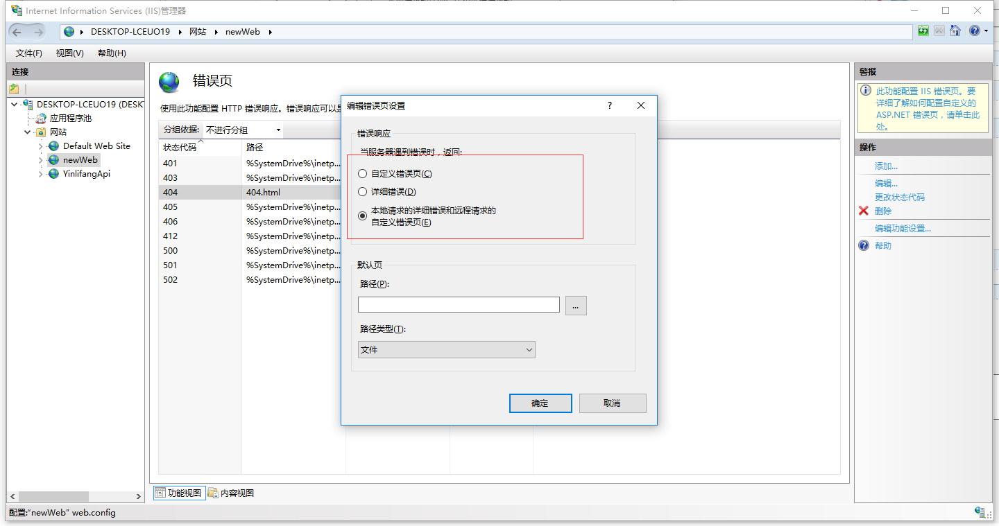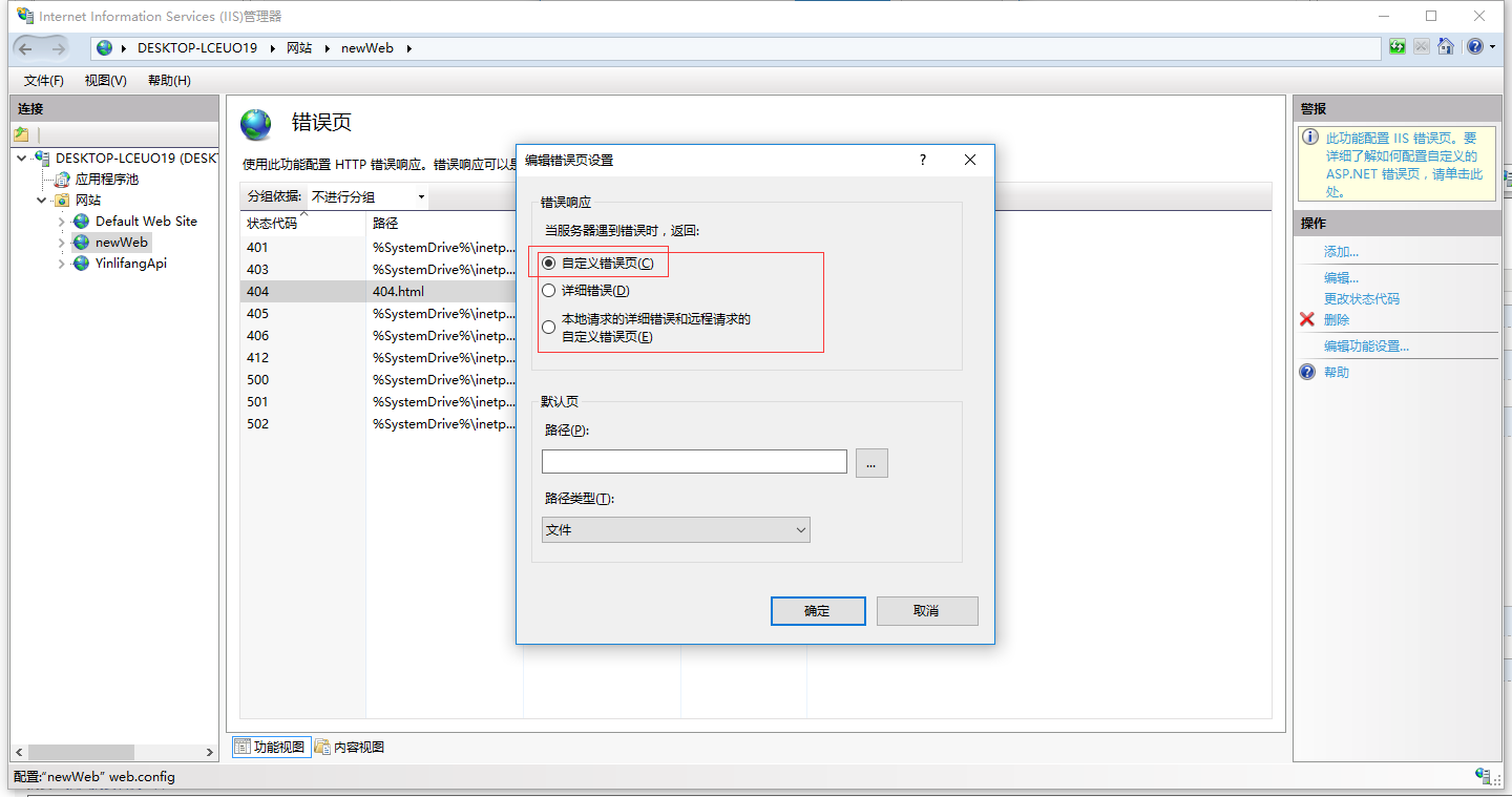 把默認(rèn)的選項(xiàng)修改為第一個(gè)選擇:自定義錯(cuò)誤頁